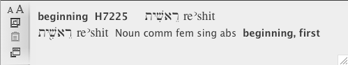 The canonical (dictionary) form of a word) of the word in the original language, and transliterated into English, the grammatical analysis of the word, the Key number and the English meaning of the dictionary form. You can choose which Keyed text is used via the Compare Text area of the Preferences dialog box.