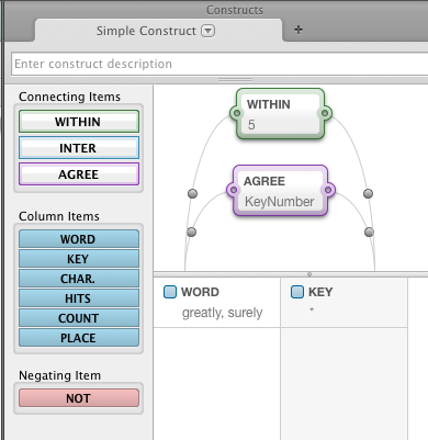 - Drag the WORD item into the first column. The Select Words dialog box appears.
