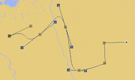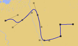 The line is initially drawn as a thin black line, to allow for precise placement. When finished the line is displayed based on the current settings and forms a Bezier curve.
