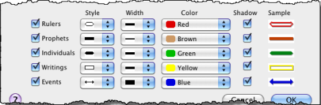 - Time Range boxes: Used to enter the time period to be displayed. The maximum range limits are -3000 (left box) to 2000 (right box). All items, including political periods and User Items, are displayed only if they fall within the set range.
